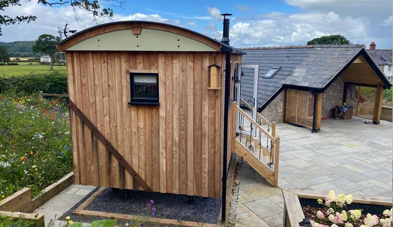 Enjoy the beautiful views of the Clwydian range in the tranquil setting of fields and gardens.